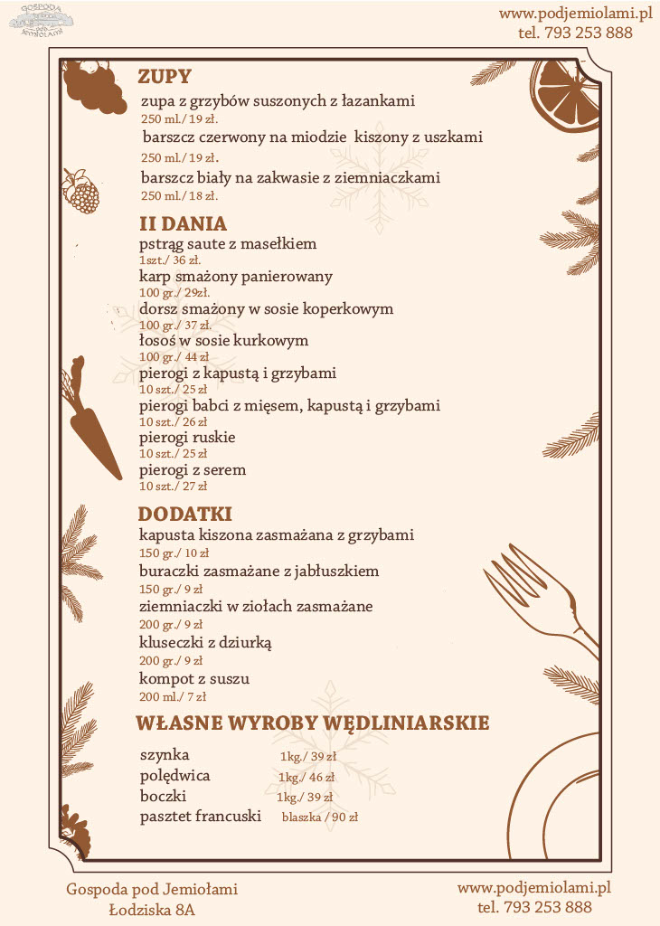 Oferujemy specjalnie przygotowane menu świąteczne, pełne tradycyjnych smaków.